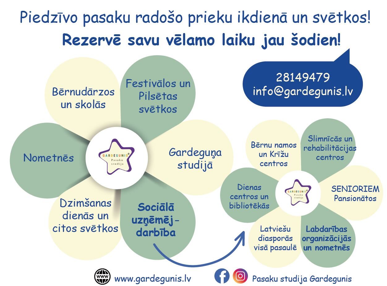 Bērniem visos laikos un dažādos vecumposmos ir paticis, ka viņiem stāsta pasakas. Tāpat viņiem patīk arī uzdot jautājumus un fantazēt pašiem. Pasaku studijā Gardegunis viņiem ir šāda iespēja – gan KLAUSĪTIES, gan TIKT SADZIRDĒTIEM.